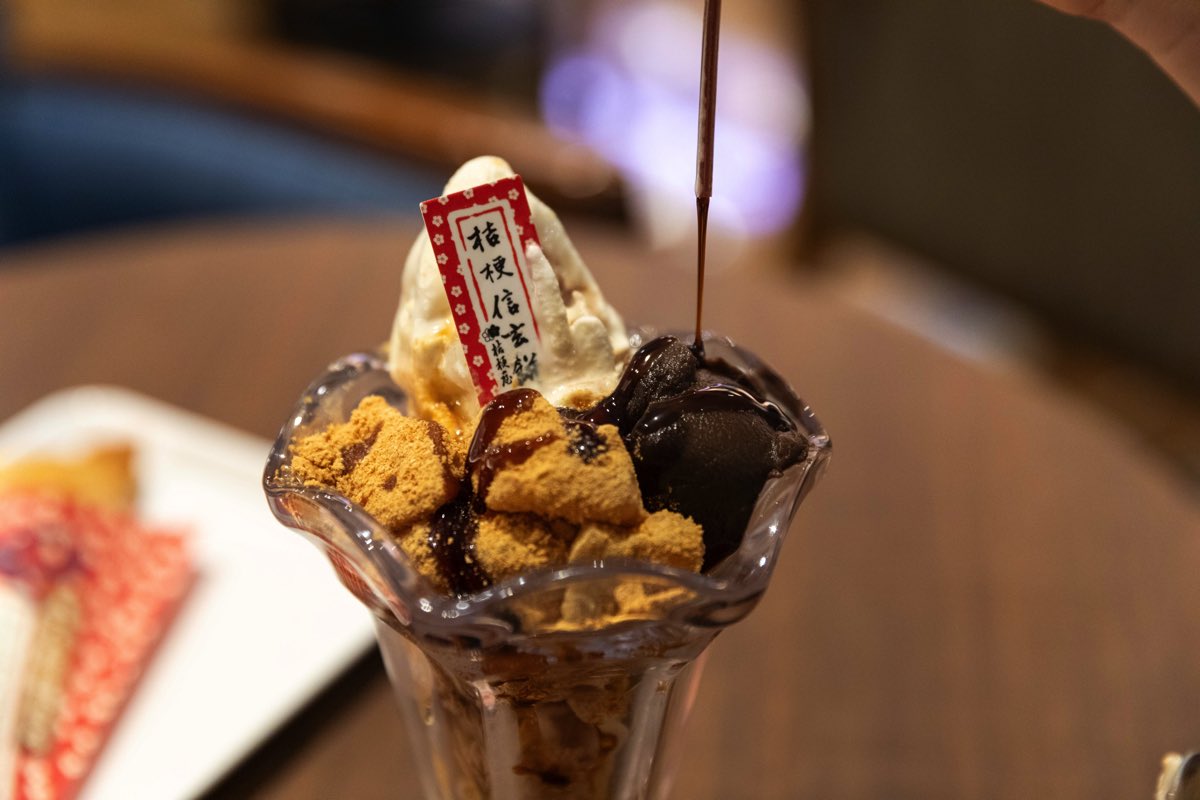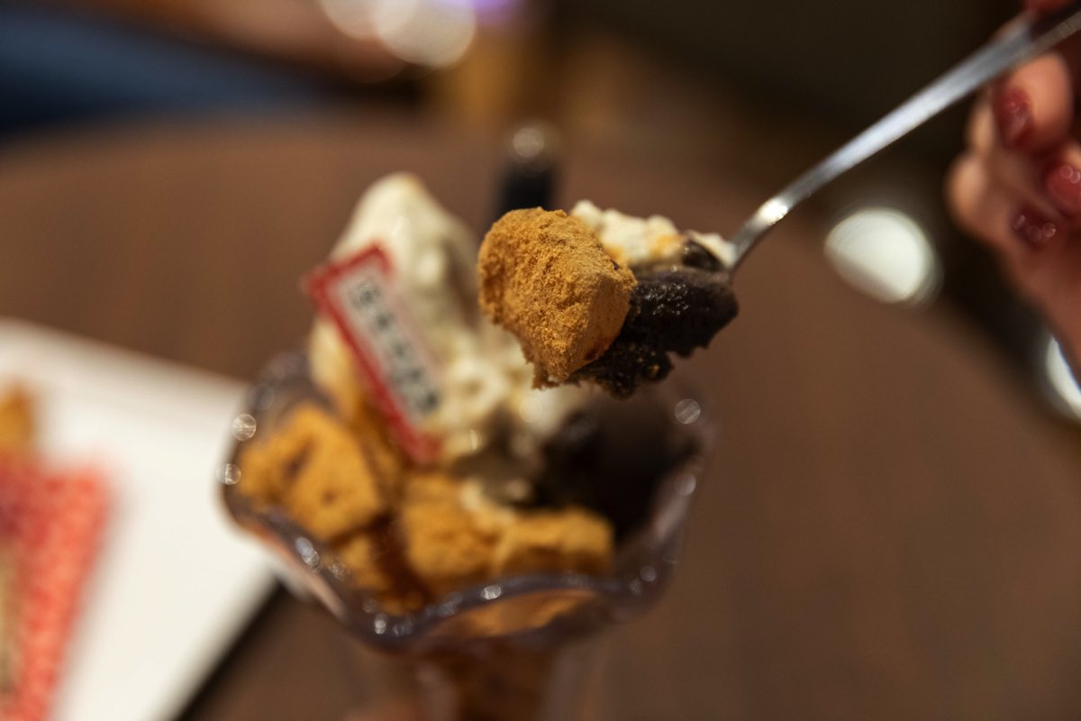 続いてお目見えする「桔梗信玄餅パフェ」にあしらう黒みつフィリングが、驚くほど口溶けよくて美味しすぎる!