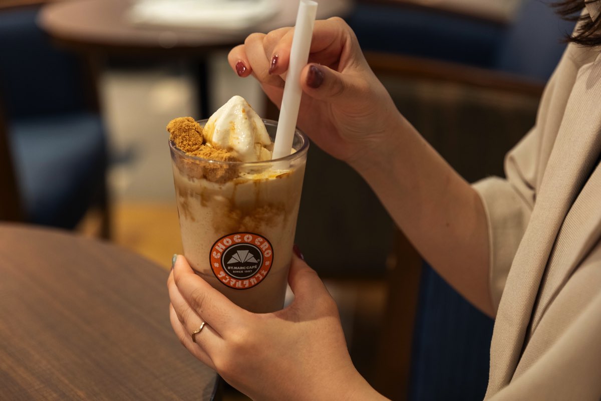 その上に「サンマルクカフェ」イチオシ、ミルク感たっぷりの濃厚なソフトクリームをのせることで、ワンランク上の贅沢感が楽しめちゃう。