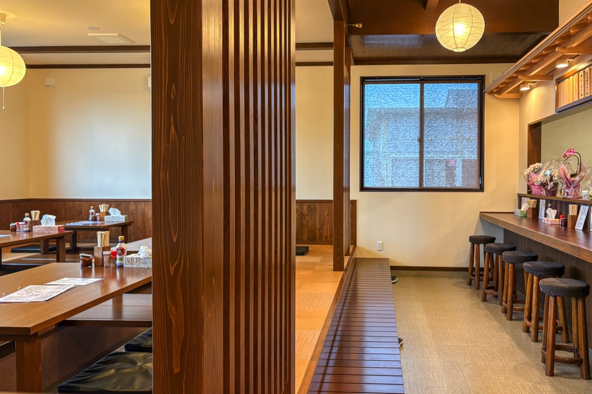 店内はお座敷とカウンター席があり、ゆったりとくつろげる空間が広がる。週末の金曜日と土曜日のみ夜営業もあり、お酒とおつまみを楽しめるうどん居酒屋になるというから、こちらもチェックしたい。