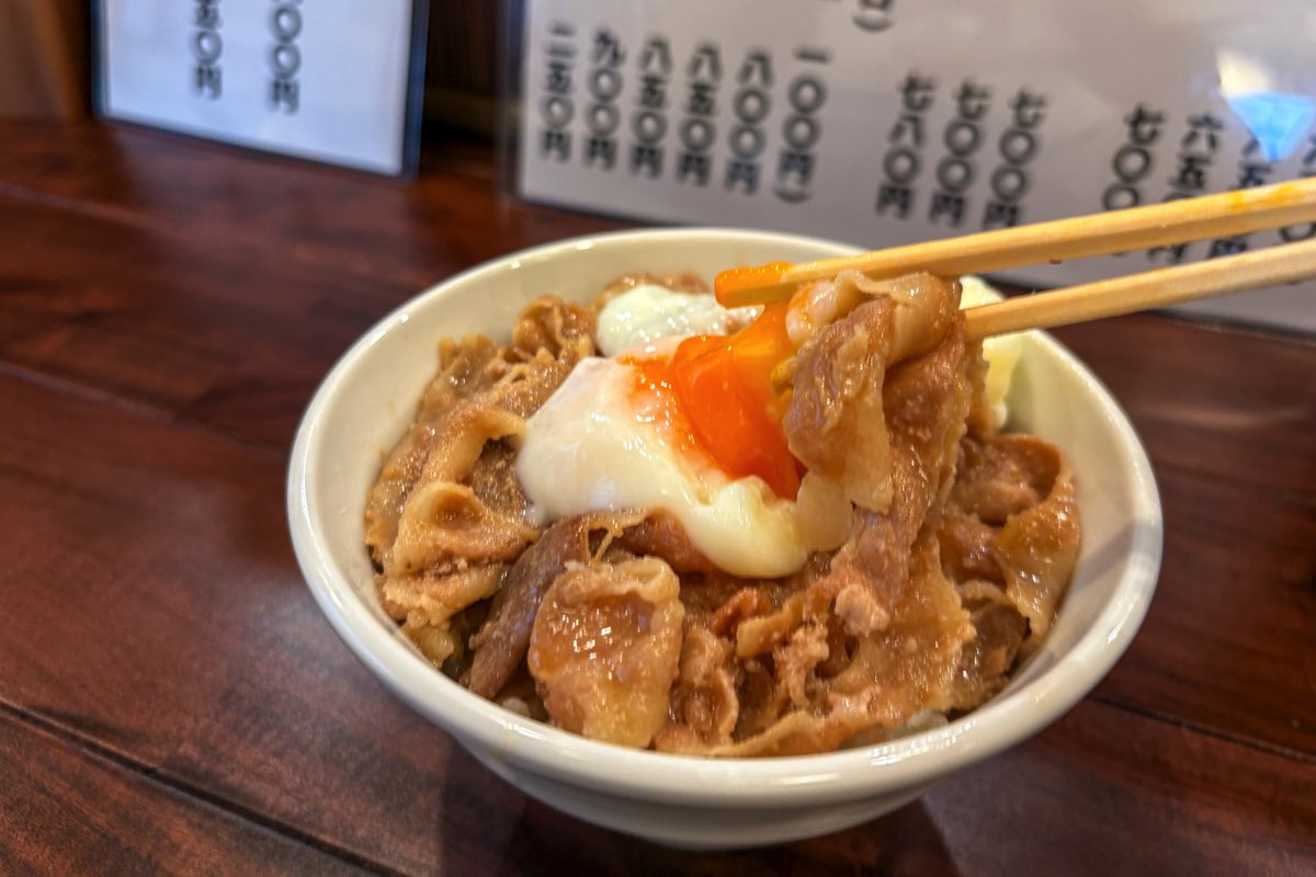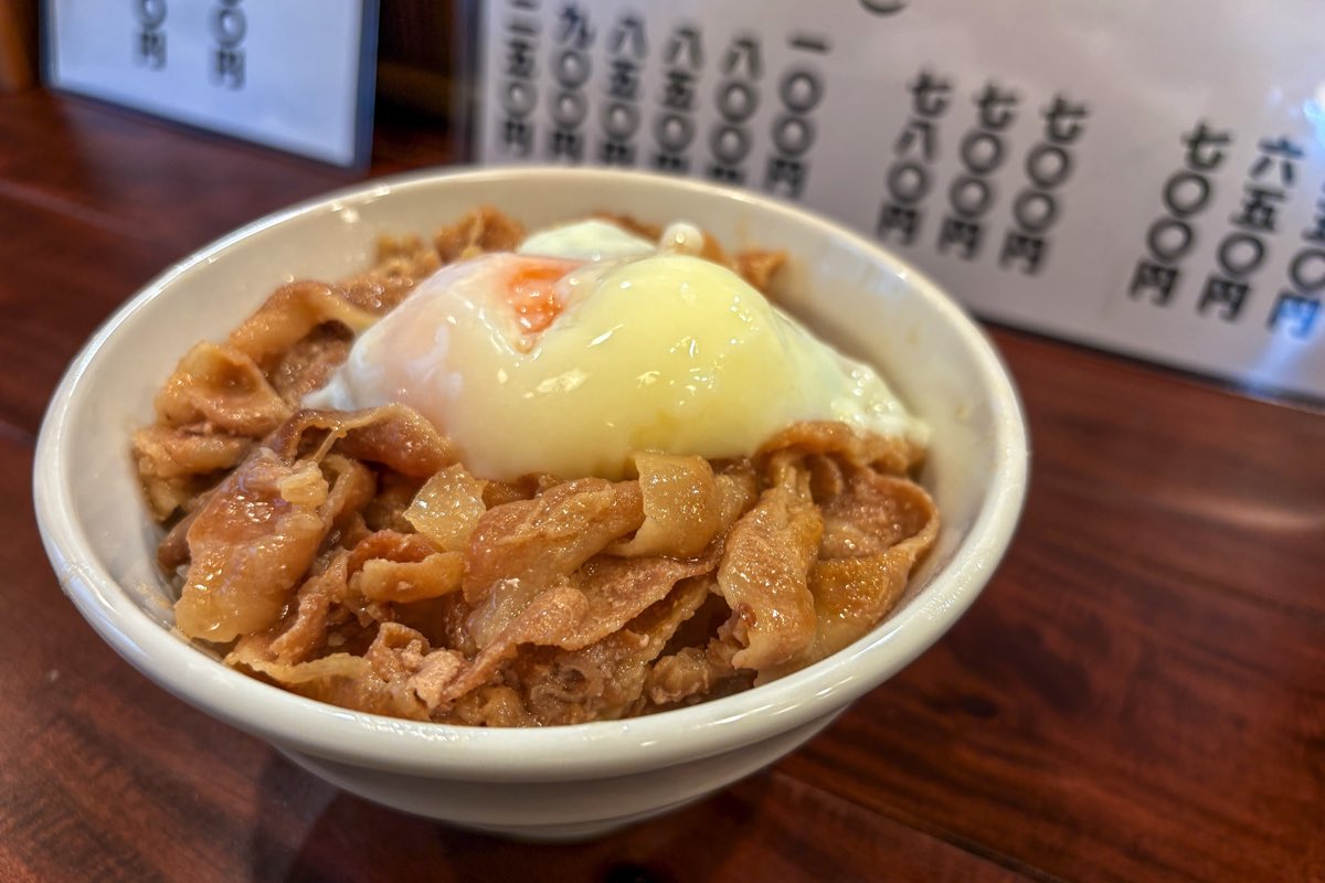 うどんのお供にリピ率が高いのが、この月見肉めし。小サイズなのに、このボリュームだから満足度も高し。