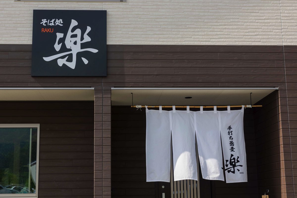 “食べにきてくれた人の「楽しい!」のひとつになりたい”や“食を楽しんでほしい”という思いを込めて名付けられた「楽」。その名が描かれた白い暖簾と看板のある一軒家が目印だ。