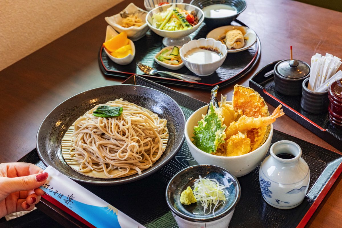 すぐに蕎麦と天丼も到着し、こんなに豪華なラインナップで1,650円と、お財布にとっても優しすぎる!取材日は5月というのにとっても暑かったので、ざる蕎麦をチョイス。