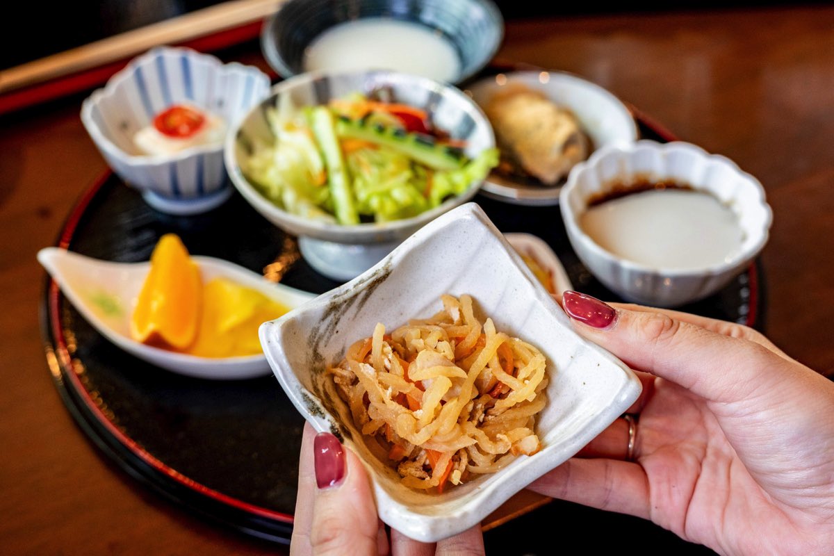 3種類の副菜の中でも、取材時に登場した「切り干し大根」のどこか懐かしい味わいにほっこり。さらに、「そば団子」や「杏仁豆腐」など、4種類が揃うデザートで食後まで大満足できちゃう♪