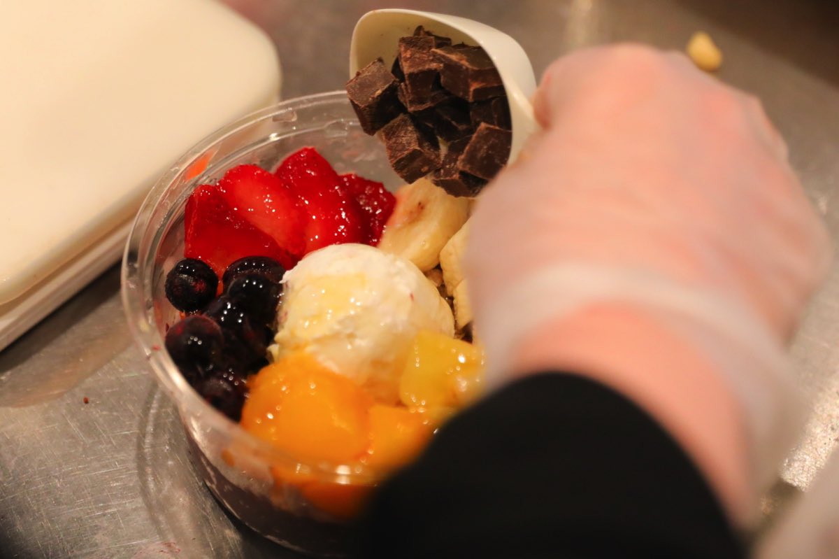 トッピングは、オレオ、板チョコ、ヌテラ、ピーナッツバター、グラノーラ増量から好みの2種類を選べる。