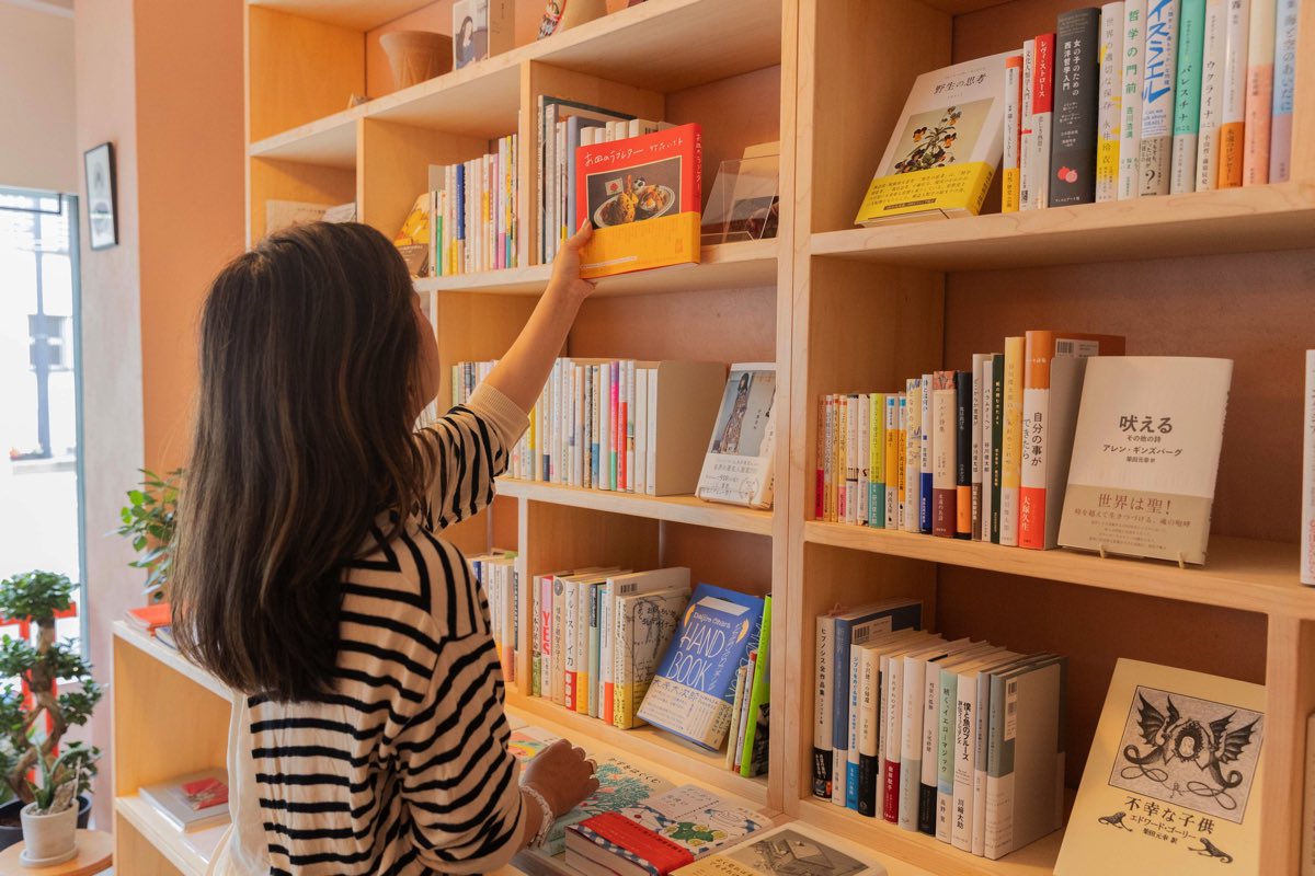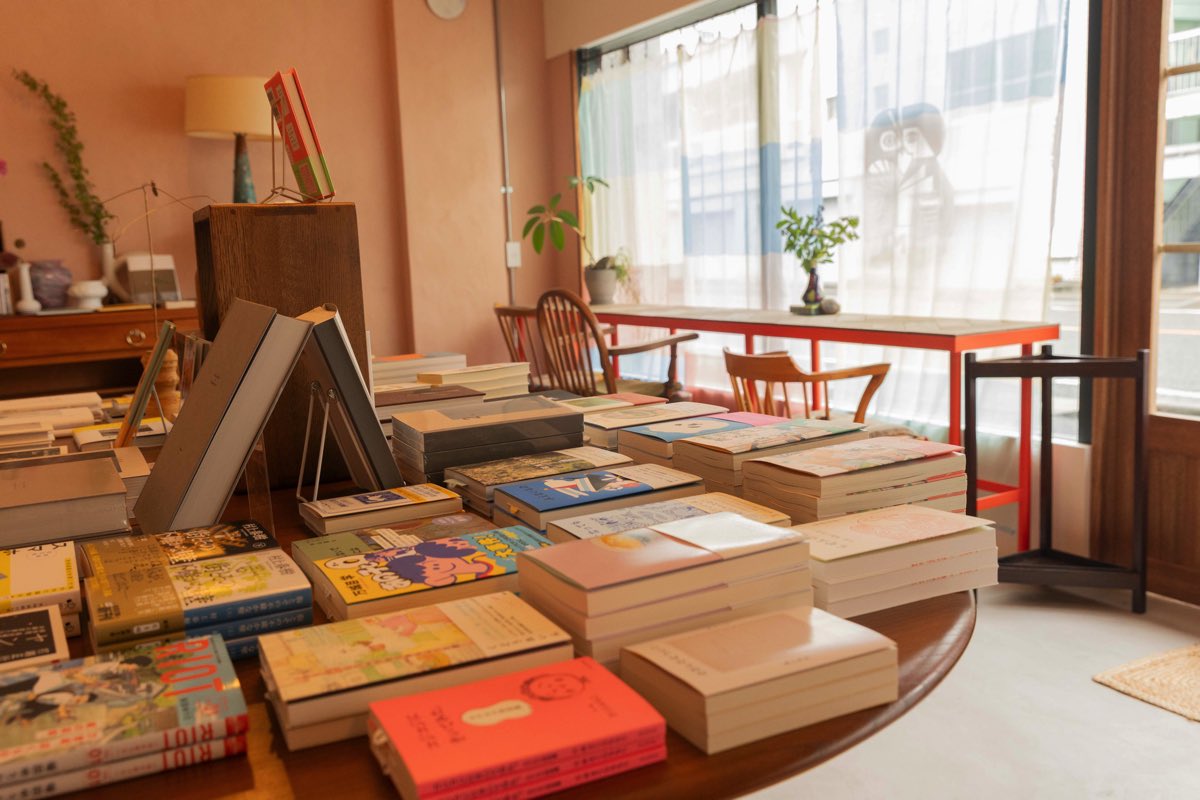 店内には漫画や新書、小説、エッセイやアートブック、デザイン本や個人出版、ZINEまで約600冊のバラエティに富んだ本が並ぶ。「誰かの心に響く本」をコンセプトに、幅広くジャンルレスに取り揃える。