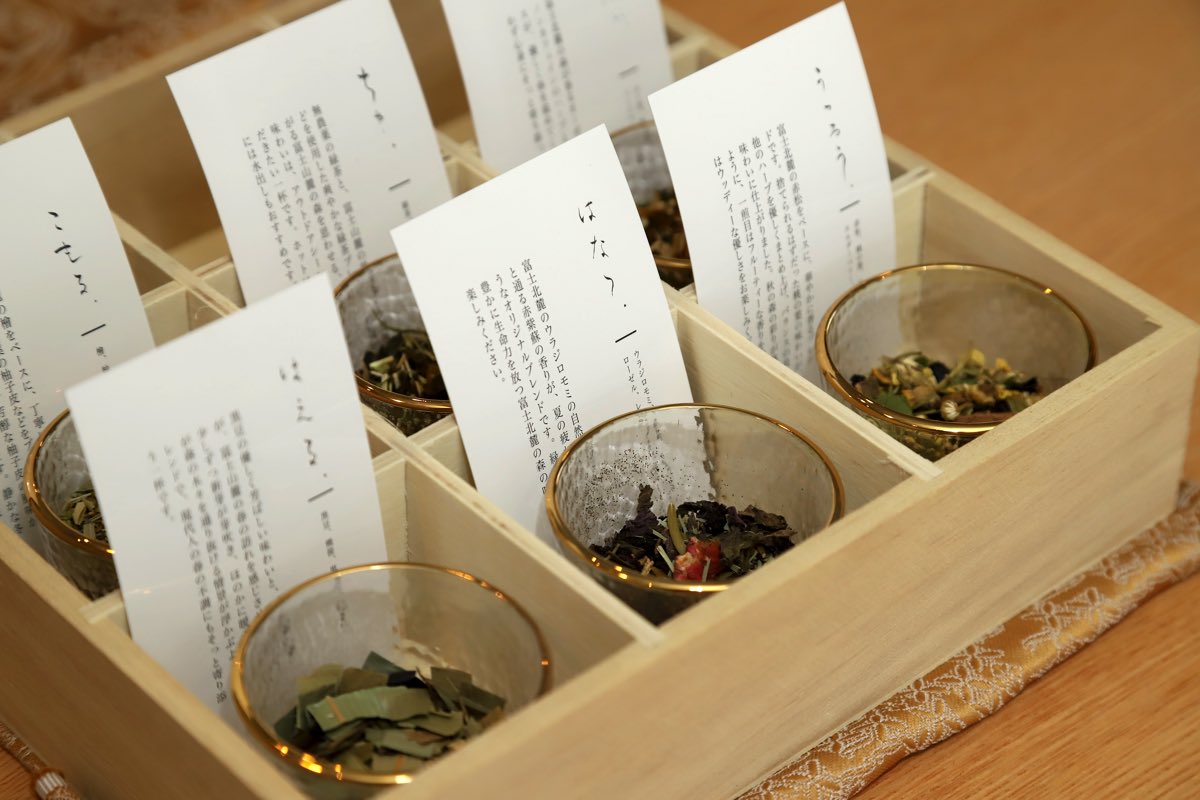 「人が健やかに過ごすためには、生きた森が必要。飲むことで、食べることで、どこかの何か、誰かの役に立てたら。富士北麓の草木の香りと共に、じっくりと今に向き合う時間を愉しんでいただけるように、小さなお店でお待ちしています」(店主談)。