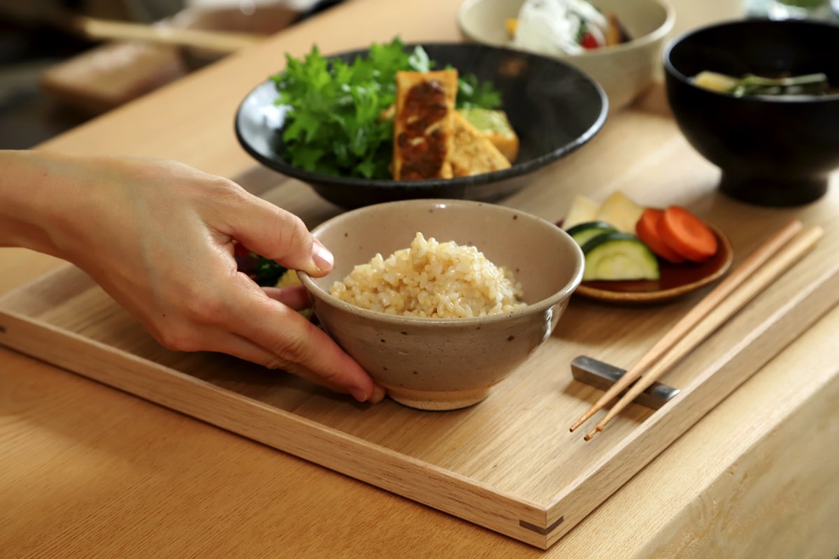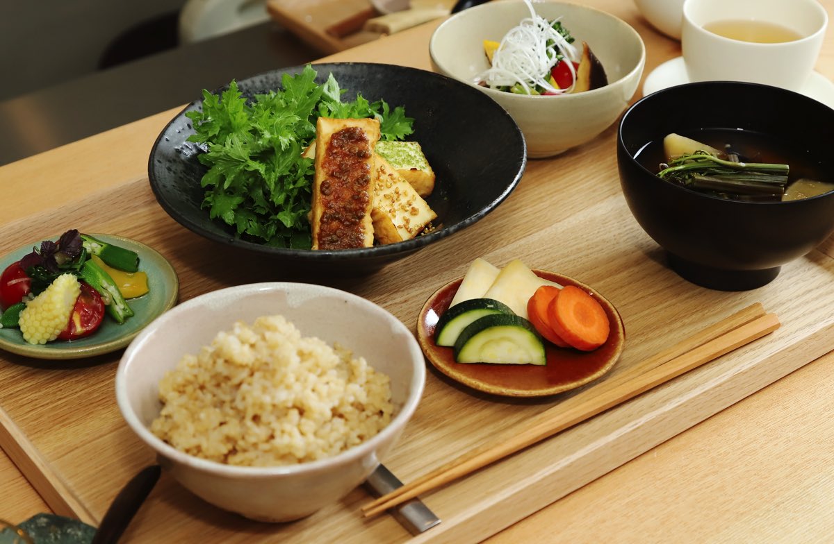 圧力鍋で炊いた玄米は、粒が整っていて美しいだけでなく、雑味が少なくとても上品。山梨の土地のものを中心にできるだけオーガニックにこだわったサラダや蕪の味噌汁など、バランスの取れたワンプレートが嬉しい。