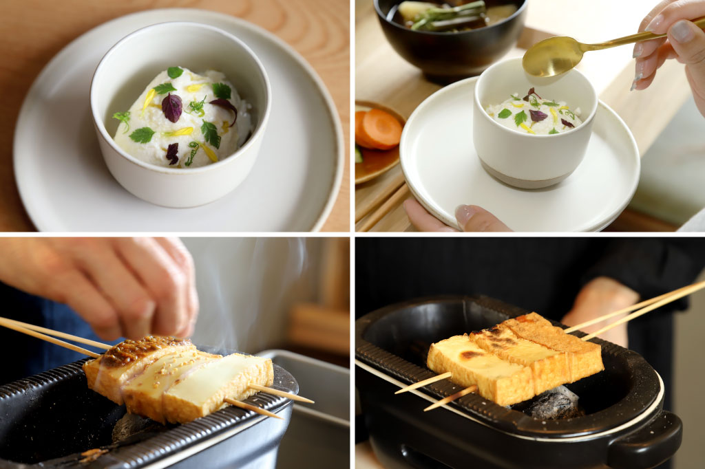 メインは厚揚げを炭火でじっくり焼き上げ、3種類の味付けで贅沢に…。