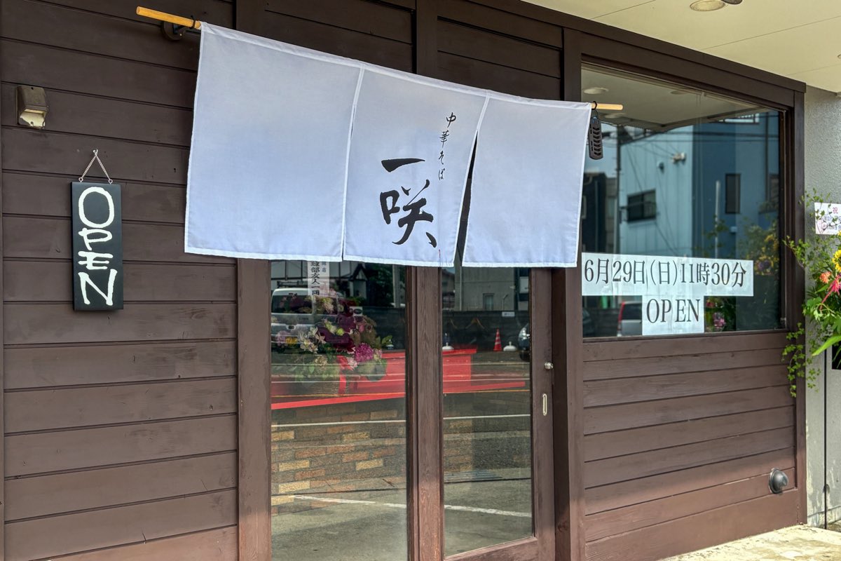 真っ白な暖簾に“一咲”のダイナミックな筆文字がカッコいい!!2025年6月29日グランドオープンを迎えた「中華そば 一咲(いっさ)」。