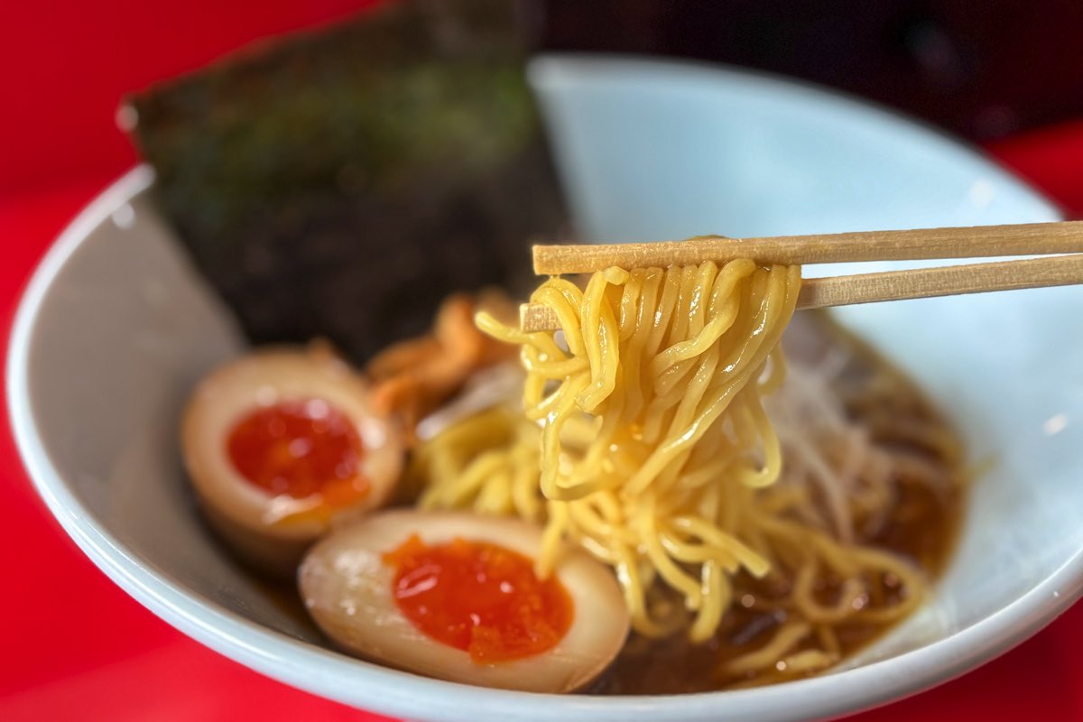 鶏ガラに煮干しなどをブレンドした、あっさりとした昔懐かしい醤油スープが優しい。和田製麺の中華そばらしいしなやかな細麺がスープに絡み、するすると食べられる。