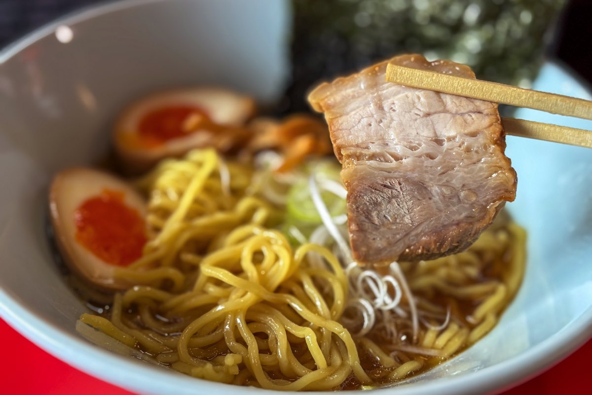 手製の豚バラチャーシューはコクがあり柔らかジューシー♪しっかり味が付いた濃厚な煮玉子の半熟具合や、細切りメンマの食感も完璧だ。