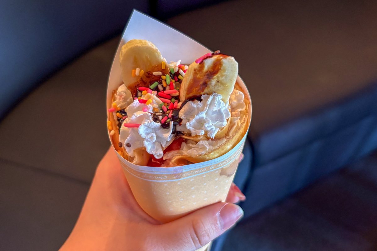 フルーツからソース、+100円のトッピングまで、自由にカスタムできる「クレープ」。優しい甘さが特徴で、子どもから大人まで馴染みやすい味わいに。口当たり軽く、ちょうどよいサイズなので、小腹が空いた時や甘いものが食べたい時に◎。