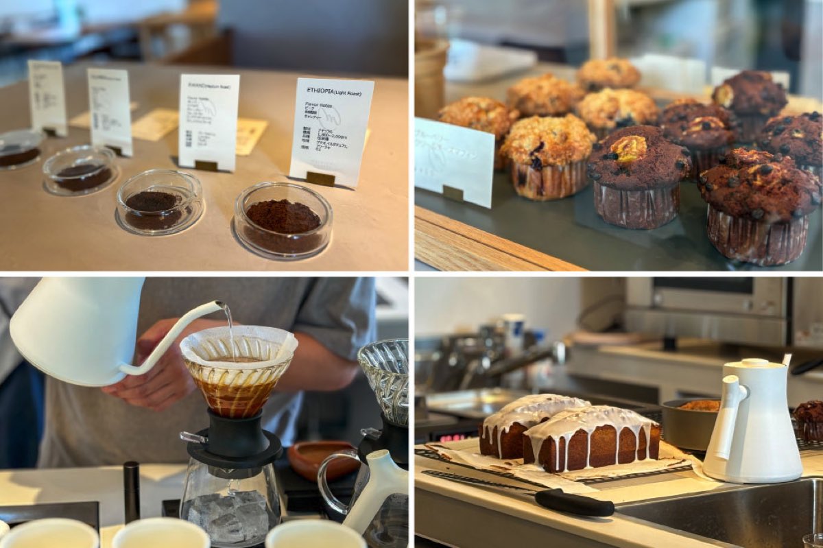 1杯1杯丁寧に淹れてくれるドリップコーヒーは、エチオピア、ルワンダ、コロンビアなど好みの豆を選べ、焼きたての焼き菓子と楽しめる。