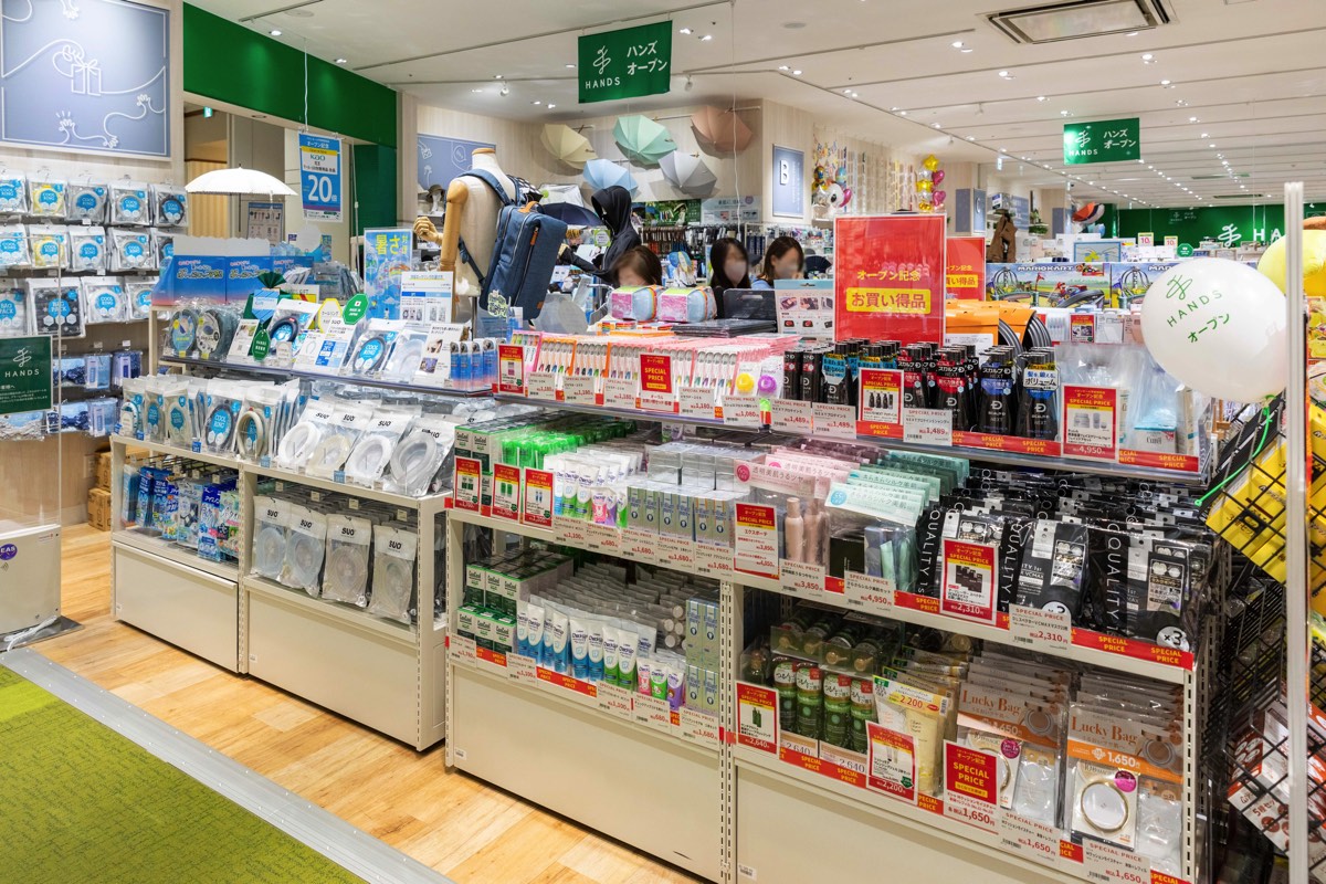 店頭左手には季節商品やお買い得商品が並び、右手には不動の人気を誇るコスメコーナーが占める。ハンズの中では比較的コンパクトなお店だが、約2万3000種類もの商品は売れ筋を中心に、ファミリー層も意識したラインナップになっているという。