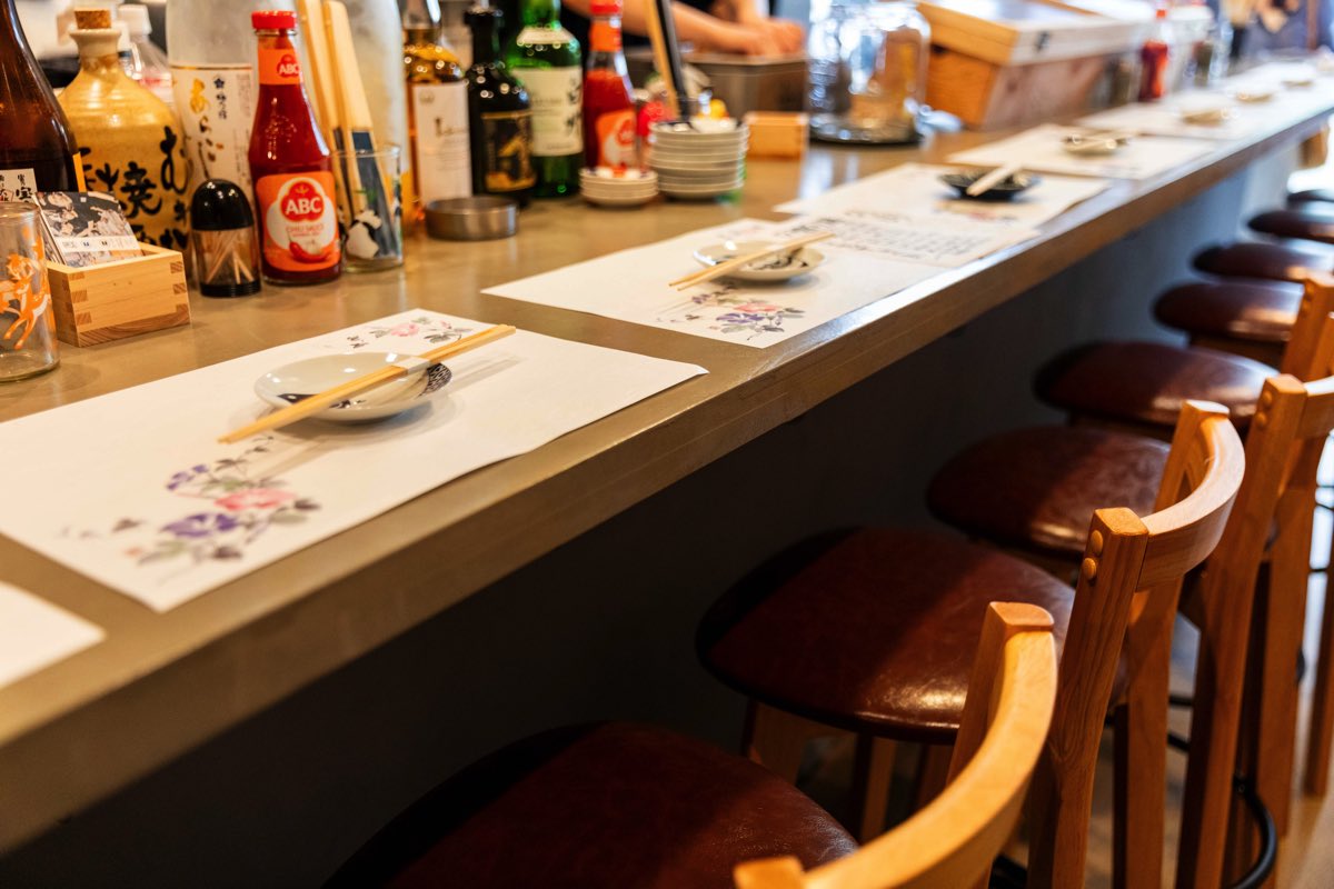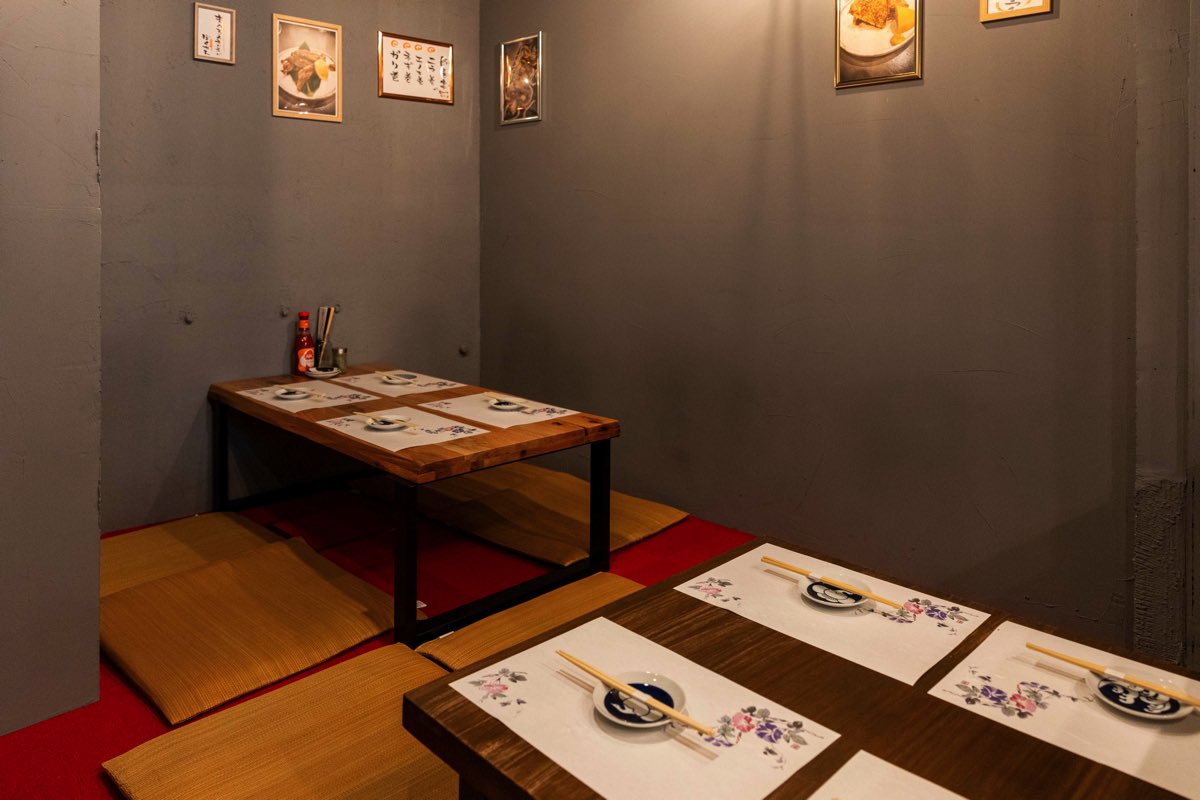カウンター席や奥のお座敷のほか、カウンター席の後ろにはテーブルが2つ用意され、立ち飲みも◎。
