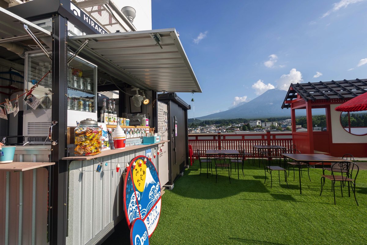 2025年7月からプレオープンしていた富士急ターミナルビル Q-STAの屋上カフェ「みななむ(3776)」へ。
