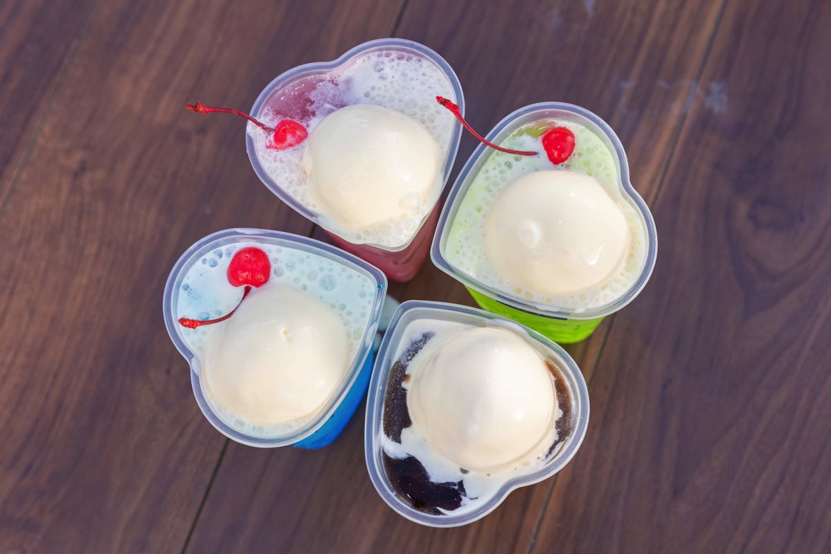こちらが通常ver.のクリームソーダたち。意外にも人気はメロンクリームソーダとか!やっぱり定番がいいのか!?カップがハート形になっているので、4つ揃えばよつ葉のクローバーにも♡