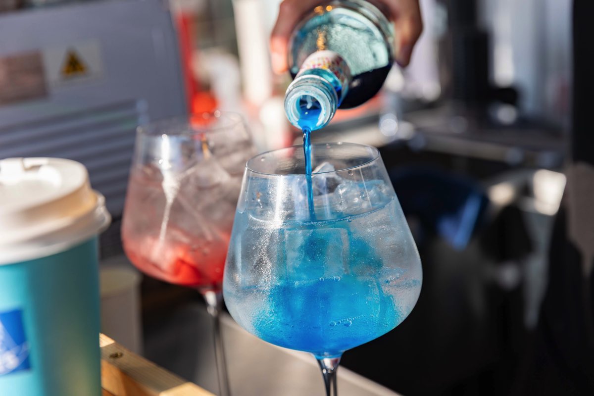 こちらのウリはこの富士山を眺めながらの、青いクリームソーダや赤いクリームソーダを飲めること。スペシャルVer,の「青富士クリームソーダ」と「赤富士クリームソーダ」を早速つくってもらった。