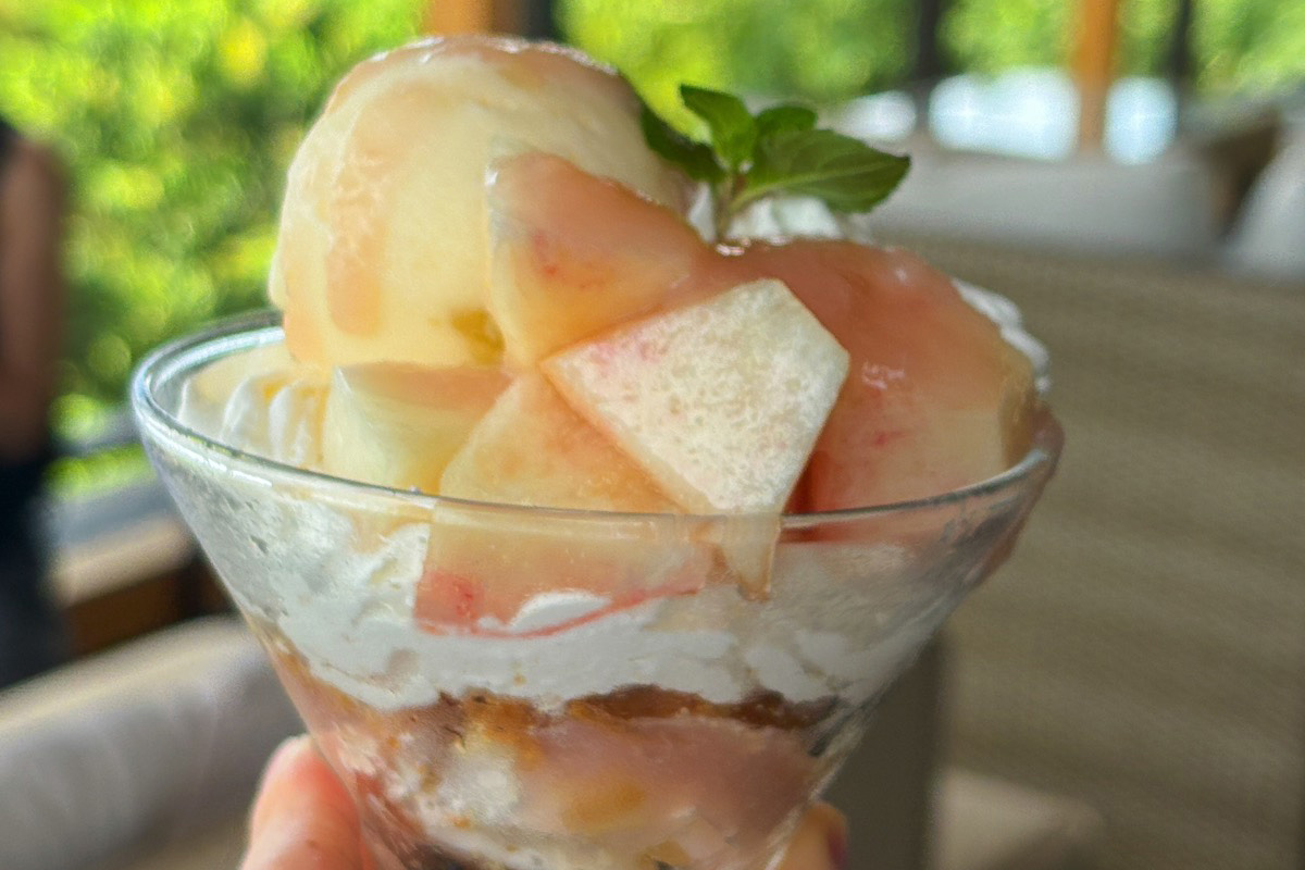 本日の「やまなし NOMESHI」は、トマトと生ハムの冷製パスタ&桃のミニパフェという、山梨の夏にふさわしい逸品♡
