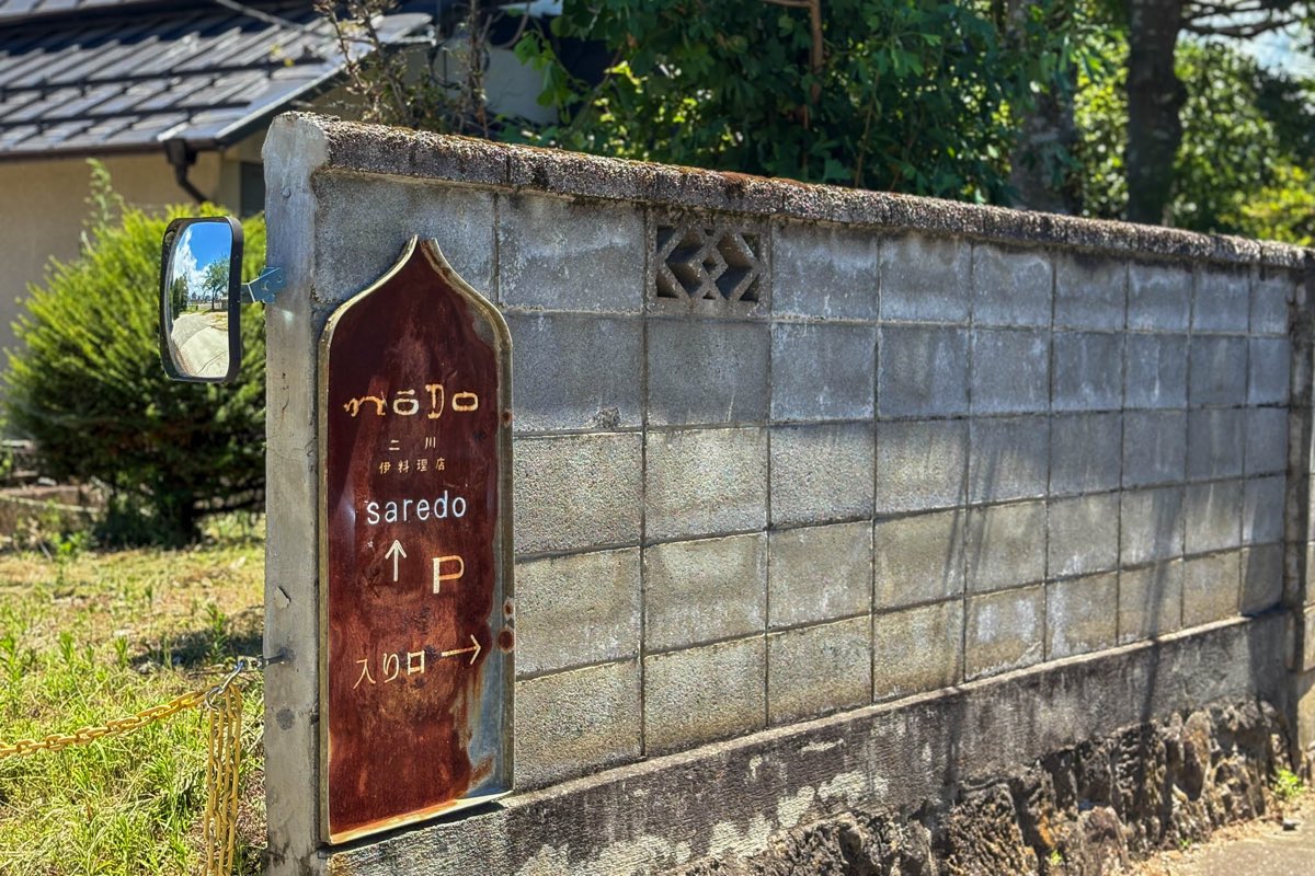 「NODO 二川伊料理店」の駐車場を通り過ぎ、奥に進んでいってガレージを曲がった先が「saredo」の駐車スペースになっている。看板もなく隠れ家のようだが、予約なしで気軽に入れるカジュアルなスタイルだ。