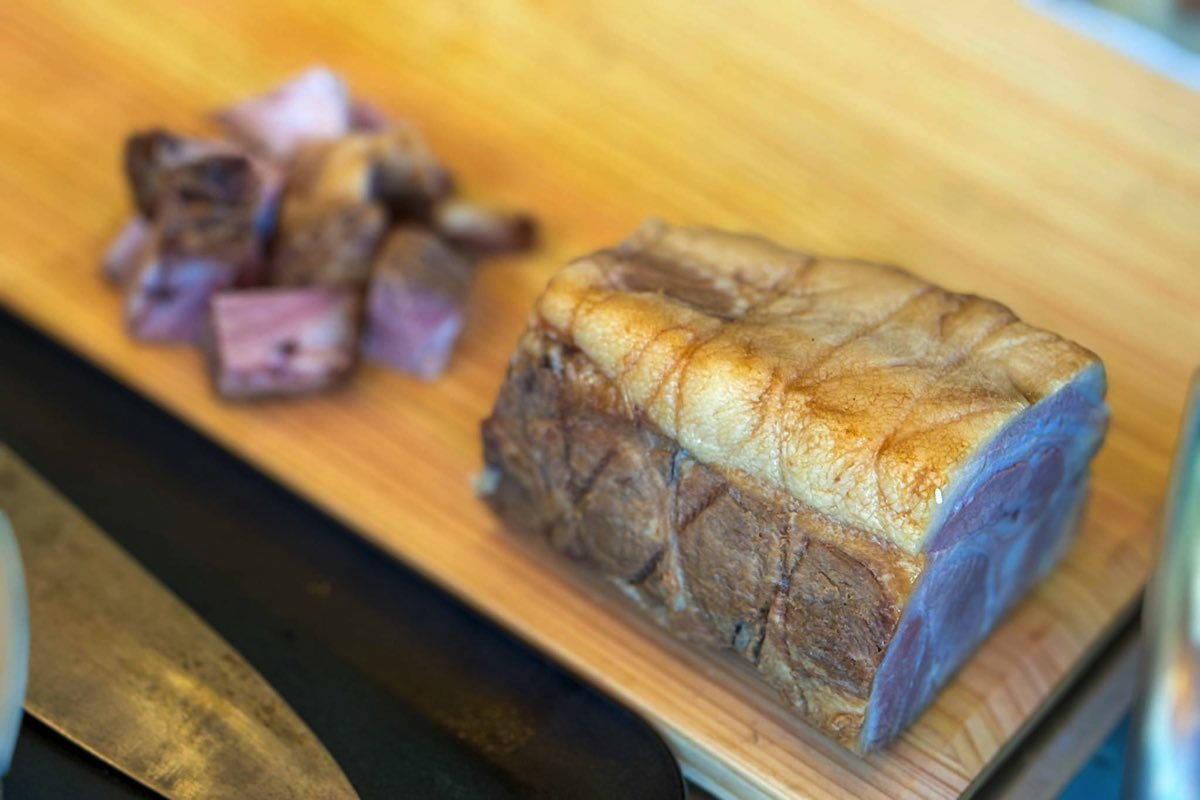 こだわりのチャーシューは、加熱しても、しっとり柔らかで肉の香りが抜群のフジザクラポークを使用。その都度切りたての旨味と風味を楽しめるのも魅力的だ。