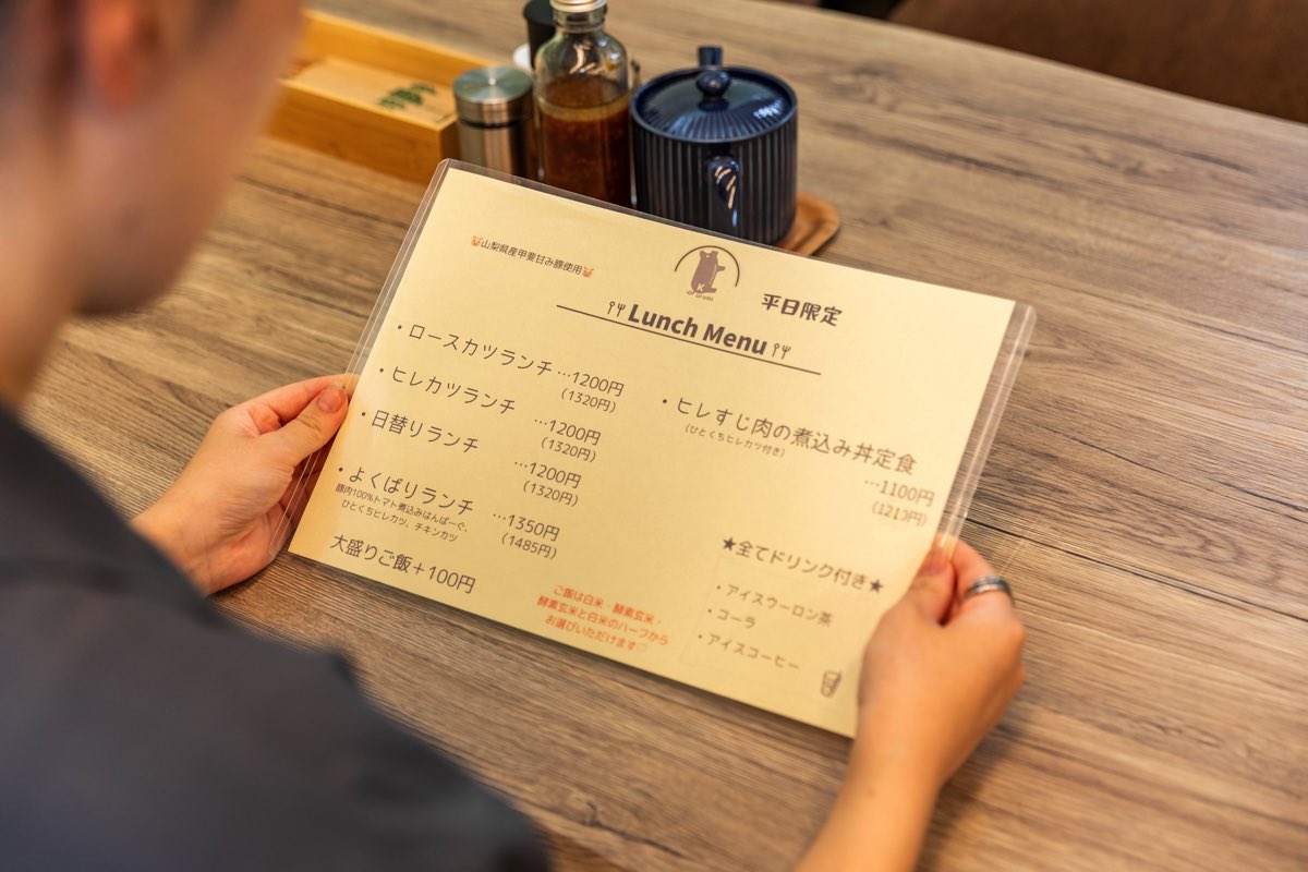 昭和町の某とんかつ屋さんやレストランで経験を積んだ店主が2025年6月21日、ついに夢の店舗をオープン!山梨県産「甲斐甘み豚」を使用し、学んだことや独自の製法で、職人の技が光るカツ料理の数々を揃える。