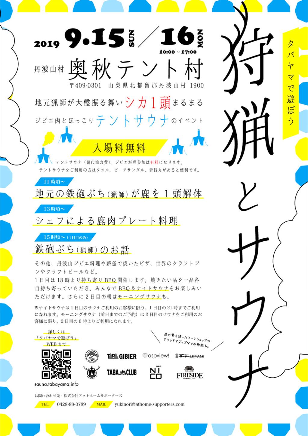 3回目となるこのイベントは、丹波山村で昔から盛んに行われている狩猟と、いまメディアでも話題のテントサウナがテーマ。