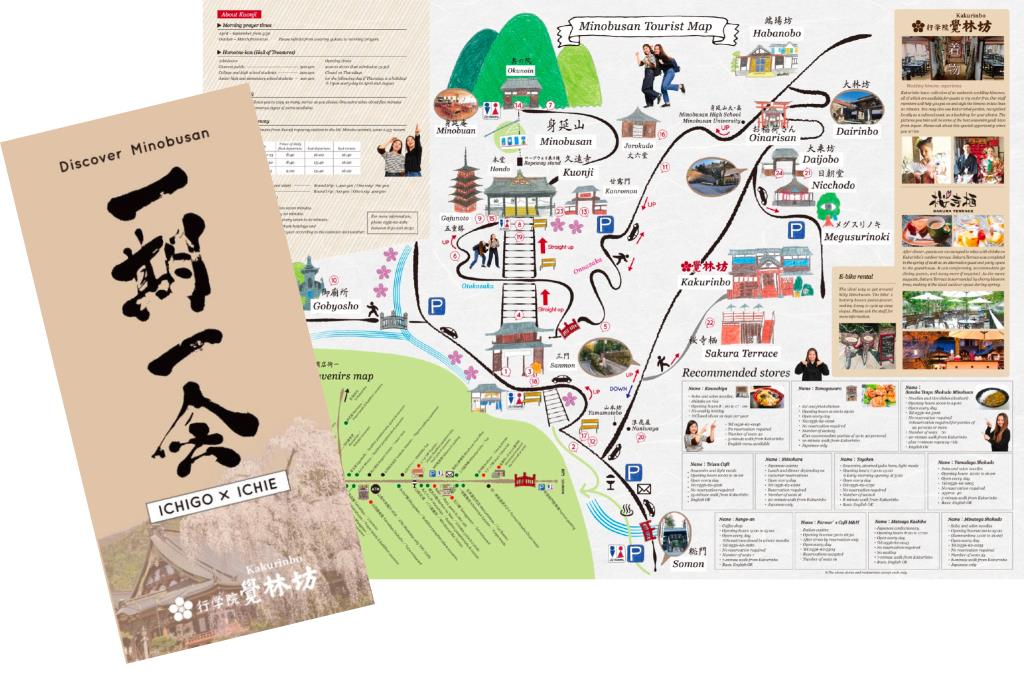 身延山英語ガイドマップは、覚林坊に滞在するゲストに無料で配布される他、甲府駅北口夢小路内にあるCASA PRISMA(カーサ プリズマ)でも入手可能。