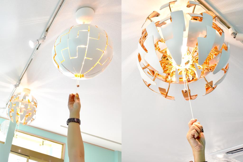 このボールのような照明、引っ張ると花開くという!「自由に遊んでいって♪」というオーナーのお茶目な発想に溢れるインテリはこれだけにとどまらず。