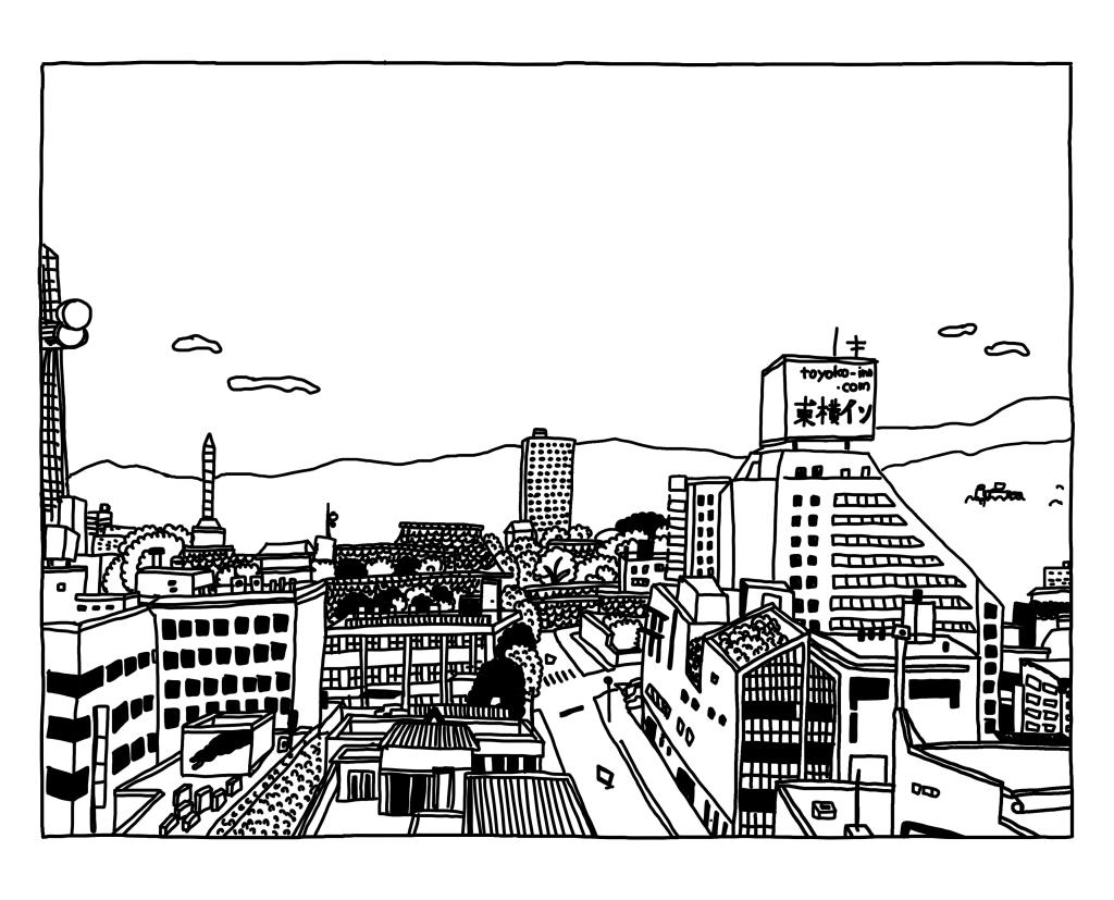 北側のエレベーターからの街並みが昔からとても好きです。上に上がるにつれて景色が見えてくる時の高揚感。山の稜線。その日の空。愛すべき街並みです。