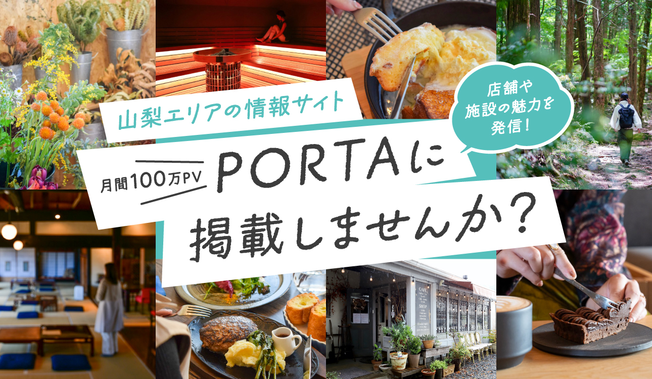 PORTA(ポルタ)は、WEB月間約100万PV、Instagramフォロワー数3万人を超える、山梨エリアを中心に店舗や施設・イベントなどを掲載しているローカルメディアです。