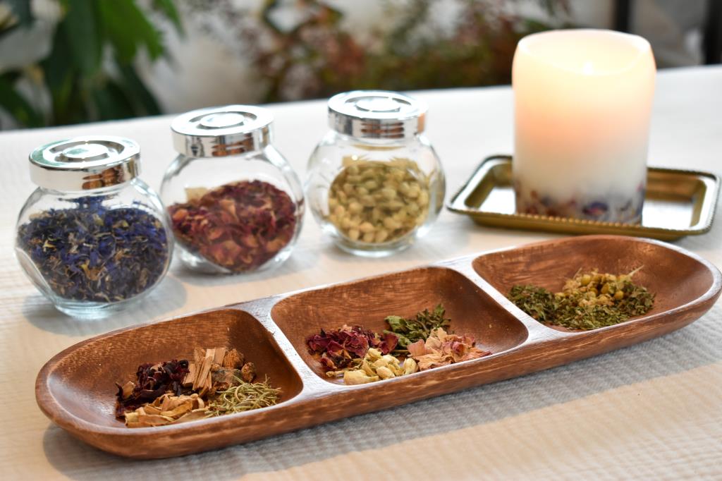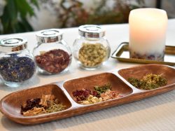 アーユルヴェーダの本場スリランカから取り寄せた薬草オイルトリートメント、約30種類のハーブから自分好みのものを選びその日その時の心身状態をはかるハーブリーディングなど山梨では珍しいメニューを用意。