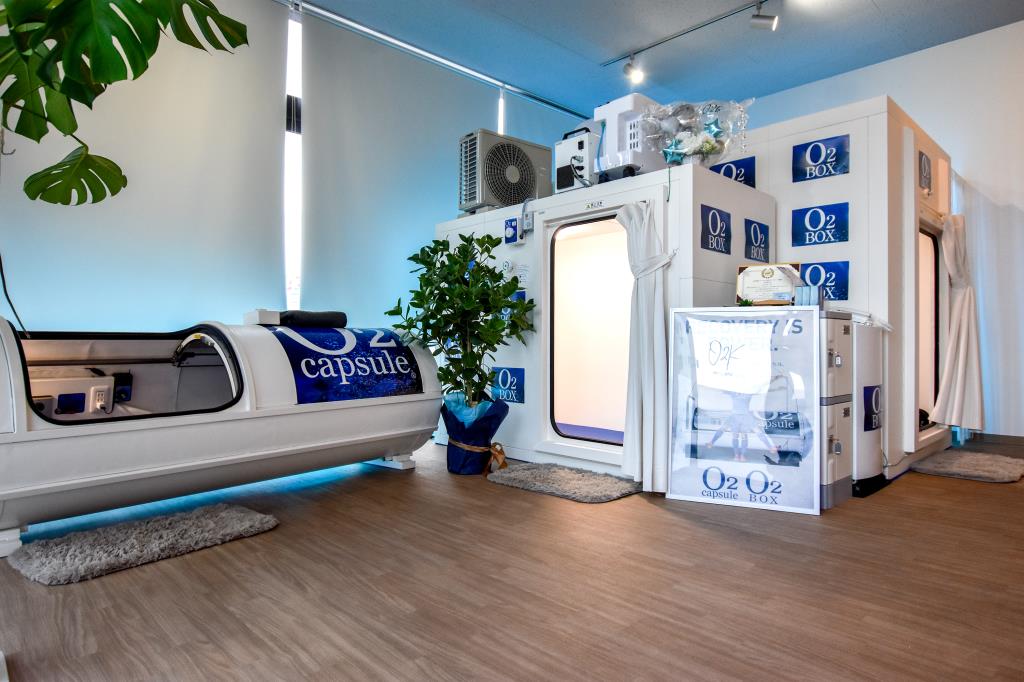 1人用のカプセルタイプだけでなく、1~2人用、1~6人用と複数人で利用できるボックスタイプのマシンも導入。エアコン+酸素濃縮機器が付いた全台最上級の3種類のマシンに入れるのは全国でもここだけ!