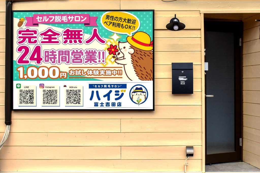 富士吉田市、富士急ハイランド駅から徒歩5分のところにあるセルフ脱毛サロンハイジ。24時間営業で365日年中無休、HPからの予約で事前決済だから好きな時に予約して好きな時間に通えるのが嬉しい。