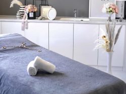 まずは女性ホルモン体質チェックを行い、不調のタイプをカウンセリング。そのタイプに合わせ、リンパマッサージ・アロマトリートメント・骨盤矯正をミックスしたオリジナルの施術を行ってくれる。
