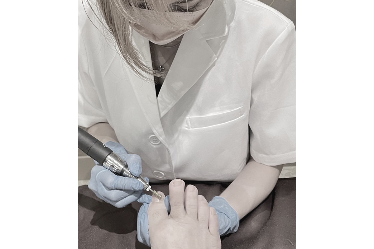 ペディグラスを使用する施術は痛みがなく、仕上がりも綺麗でネイルもOK!