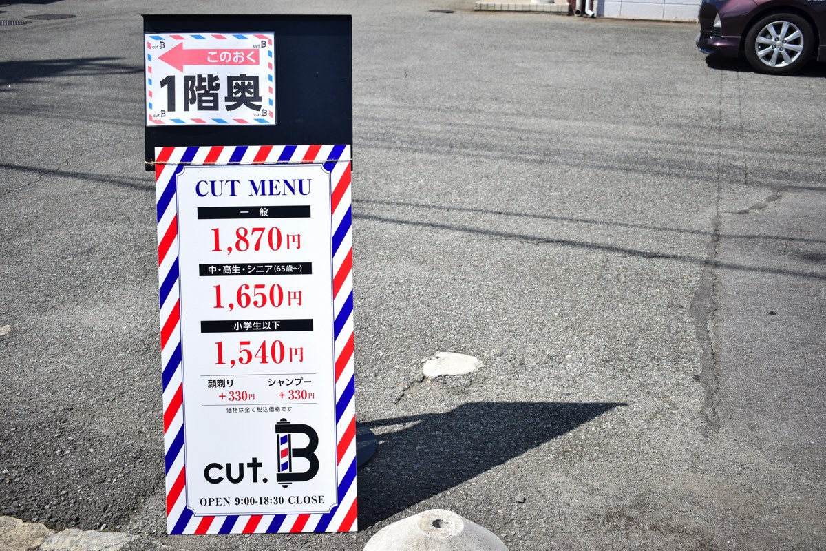 | メニュー | ・一般…1,870円 ・中・高生・シニア(65歳~)…1,650円 ・小学生以下…1,540円 上記メニューに顔剃り…+300円、シャンプー…+300円 ・白髪染め…4,400円 ・白髪ぼかし…4,180円 ・ヘッドスパ…990円 ・ノーズクリーン…990円 ・シェービングのみ…1,540円 ・婦人シェービング…1,980円 |
