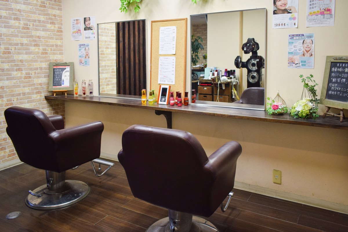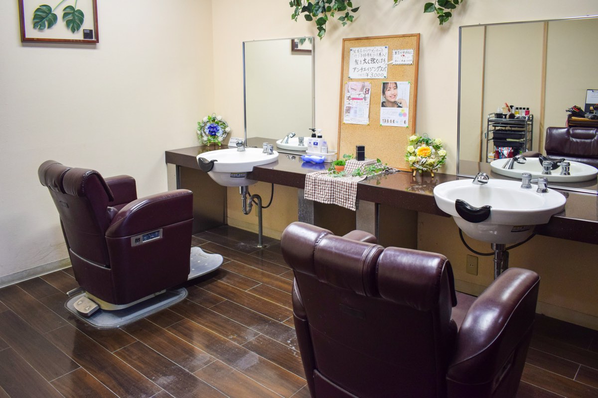 韮崎駅近くのmanish。1階ヘアサロンでは、女性は女性スタッフ、男性は男性スタッフが対応するだけでなく、マンツーマンで最後まで施術してくれる。