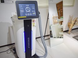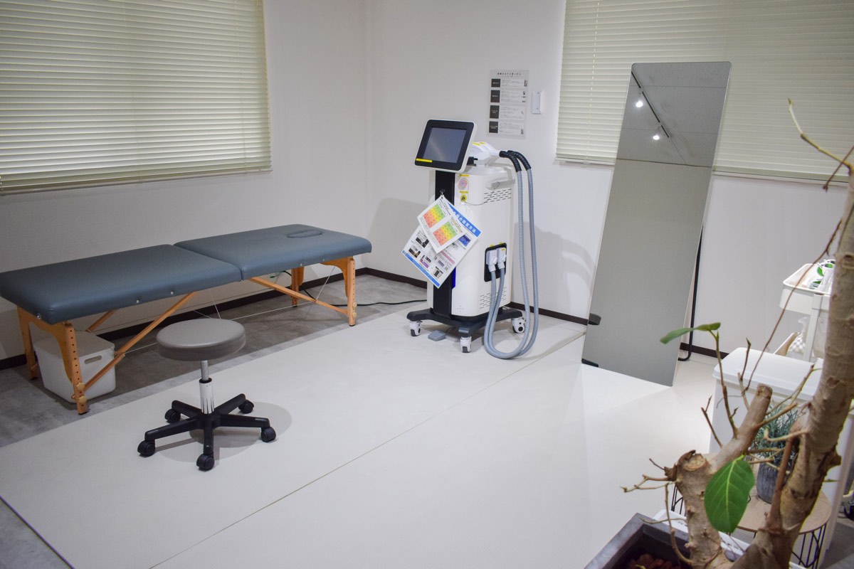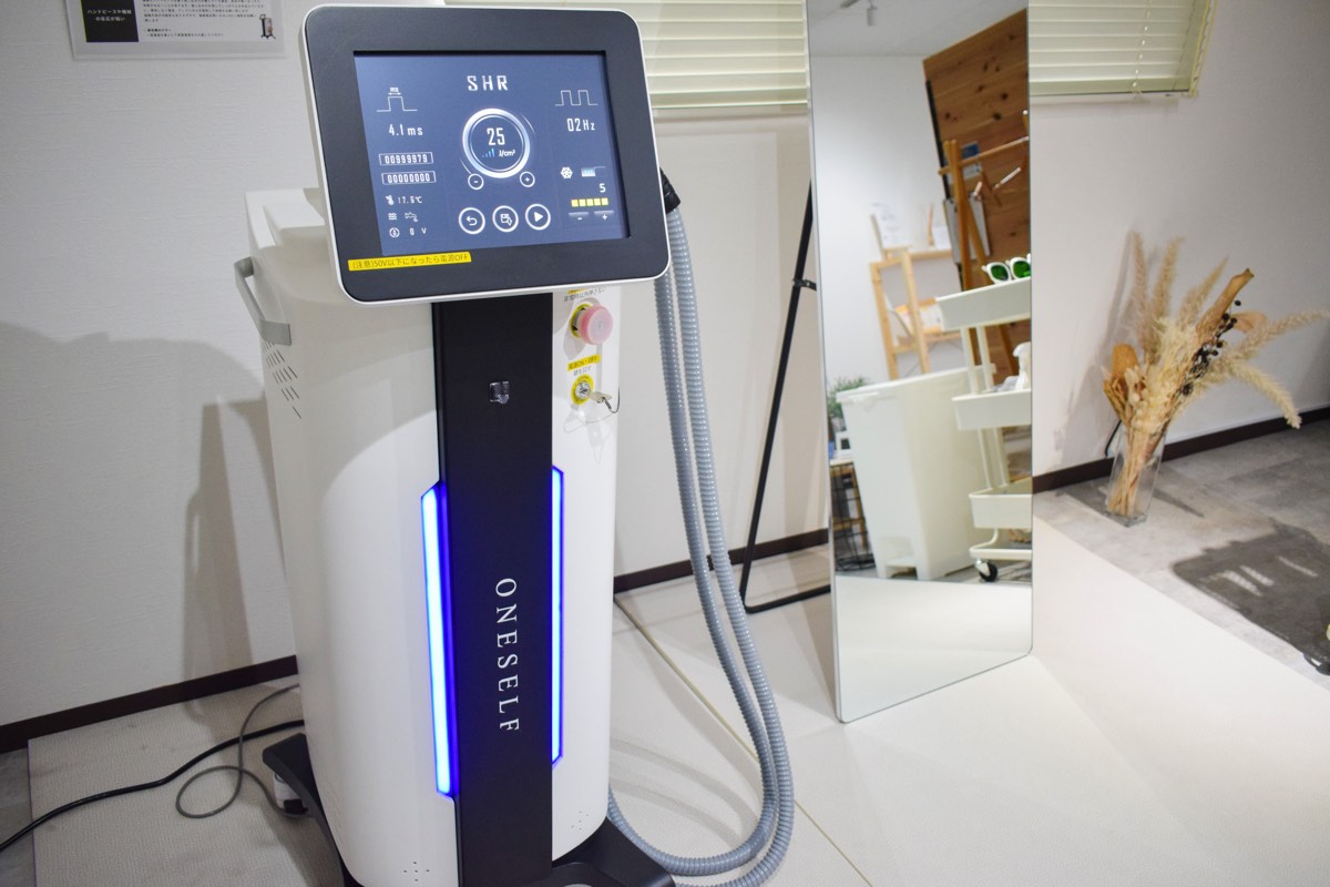 甲府駅から約3分、セルフ脱毛サロンONESELF。店内は白を基調としたカフェのような雰囲気。