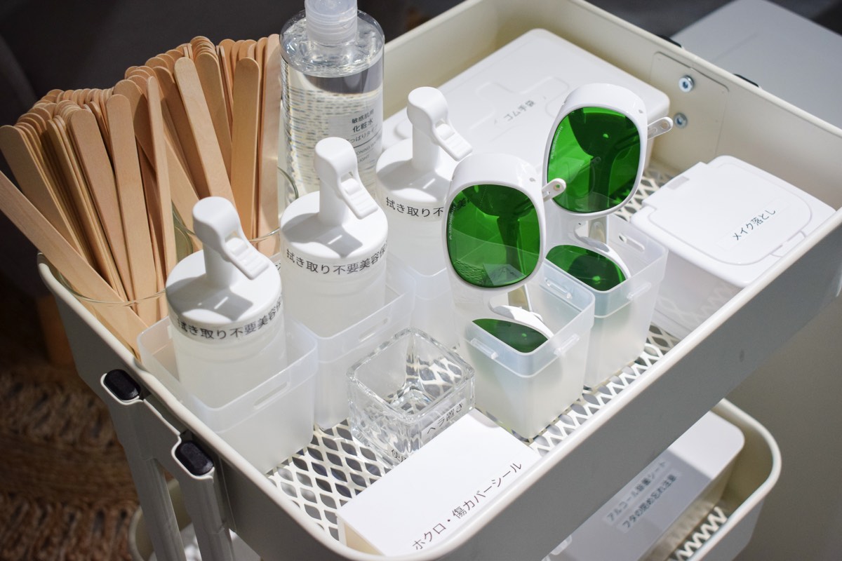 セルフ脱毛や無人サロンって大丈夫かな…?そんな心配はご無用!機械の使い方や施術の流れなどを分かりやすく書かれた説明書や化粧水などアフターケア用品がしっかり完備されているので安心して施術できるだけでなく、ベッド用カバー・掃除機もあるので清潔感も◎