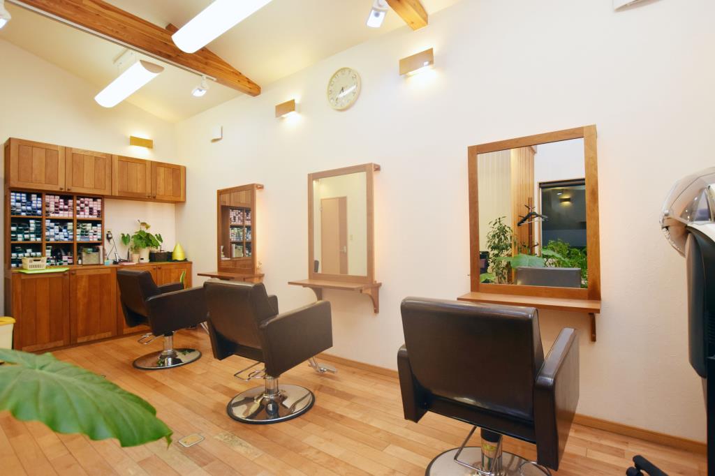 店内のワックスなど全てアンチアレルギー、天然無垢木材の木の香りに包まれてスローな時間を過ごしてみませんか。