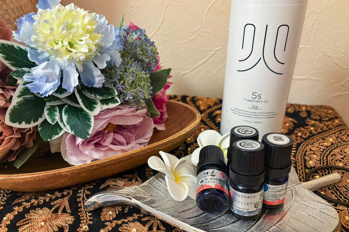 アロマトリートメントには100%の精油と天然のオイルを使用しているので心身のリラックスやストレス軽減効果を期待できる。