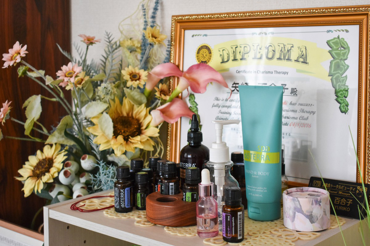 ストレスなどで傷ついた細胞を修復し、血液やリンパの流れを良くしてくれる超音波を使った波動セラピーや、高品質なドテラ社のエッセンシャルオイルを使用したアロマタッチなど、専門的な知識を持って一人ひとりに合った施術をしてくれる。
