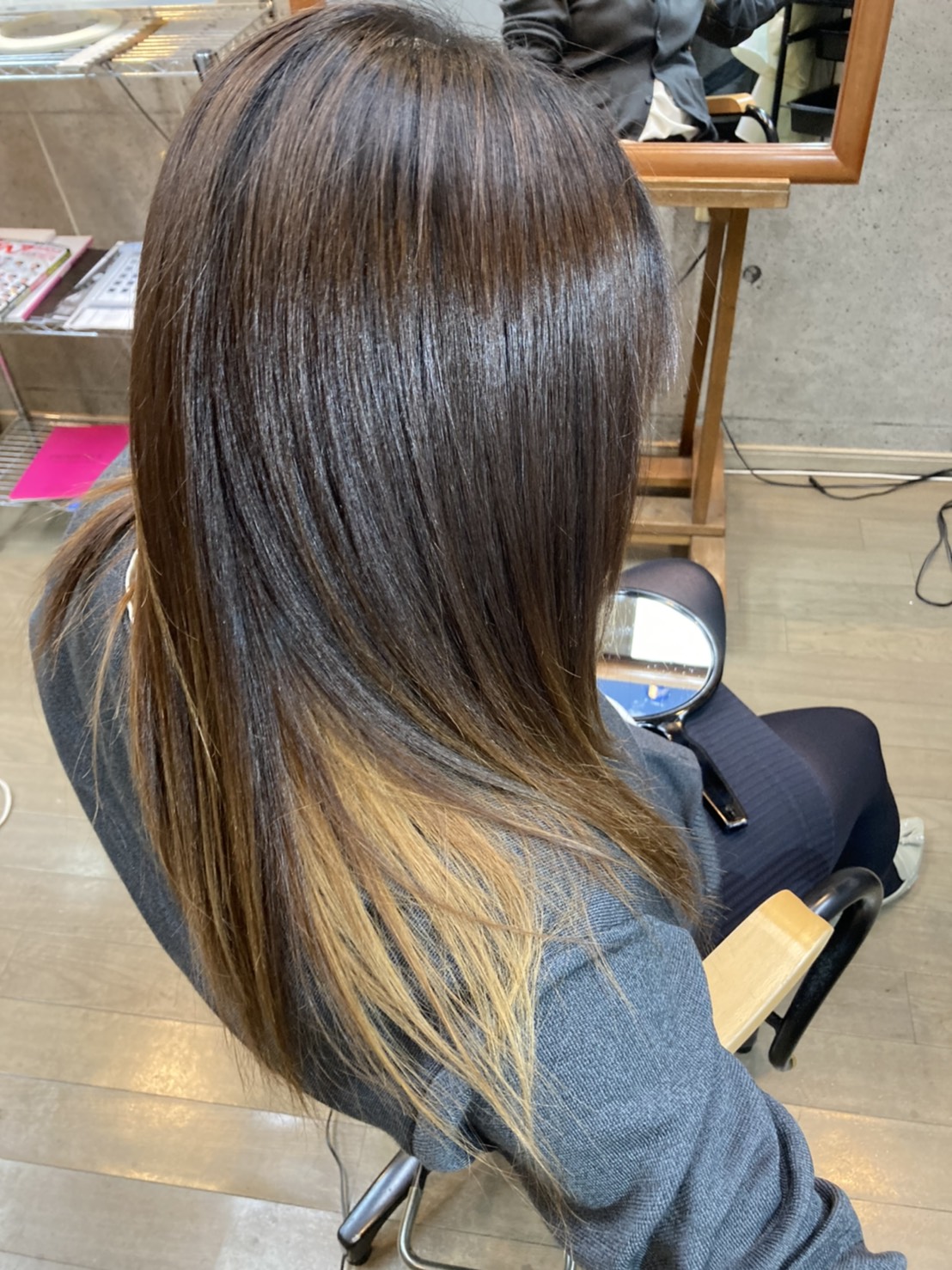 ブリーチはしてないですが毎月フルで染めているのでダメージが気になっていて今回は髪質改善のトリートメントとダメージの少ないカラーをしてもらいました👏👏👏