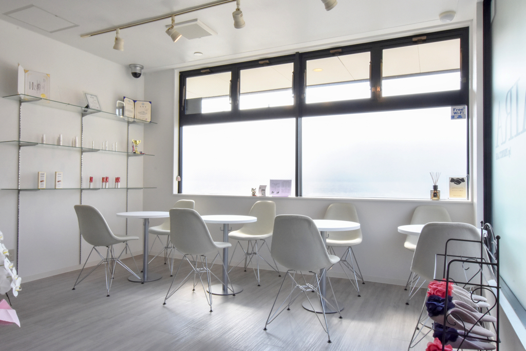 Tripodまつ毛エクステ、ネイル、脱毛を併用しているトータルサロンTripod☆広々した明るい店内には水のカー... -