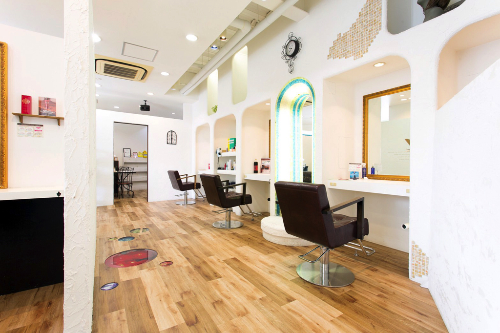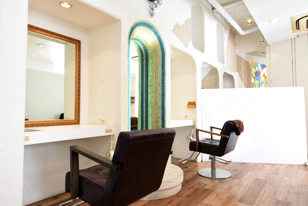 hair salon kikoアルプス通りに位置する丸い窓が目印の美容室。ミントブルーのモザイクタイルが印象的な可愛らしい店内は、... -