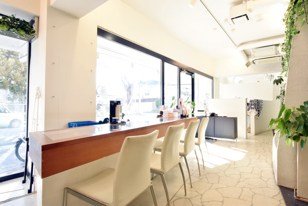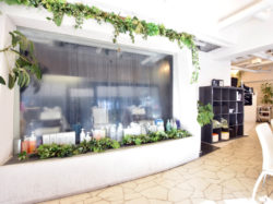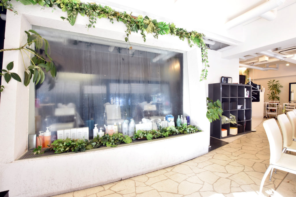 広々した明るい店内には水のカーテンや緑が多くリゾートにいるかのようにリラックスして施術がうけられる。