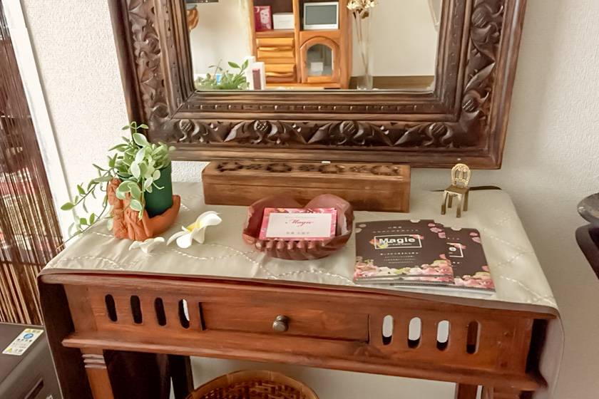 雑貨店YAYAPAPUS内にあったサロンをプライベートなお家サロンに場所を移し、アジアンテイストはそのままにさらにゆったりとした時間を過ごすことができる大人の癒し空間へ◎