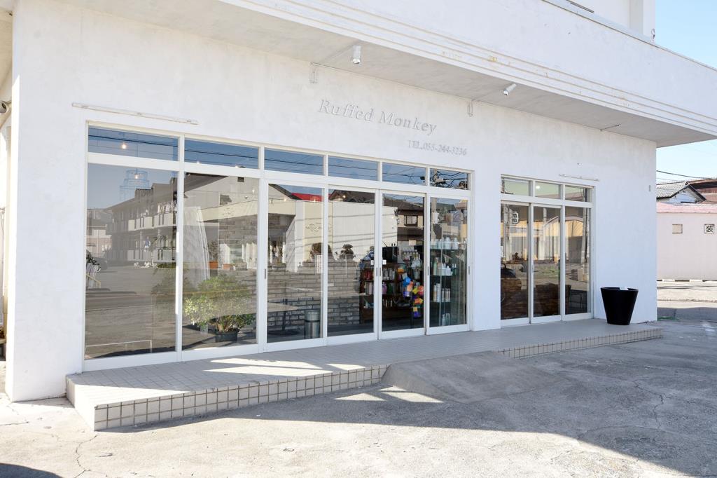 真っ白で洗練された外観が目印のヘアサロン、Ruffed Monkey。