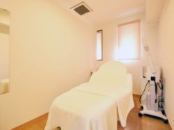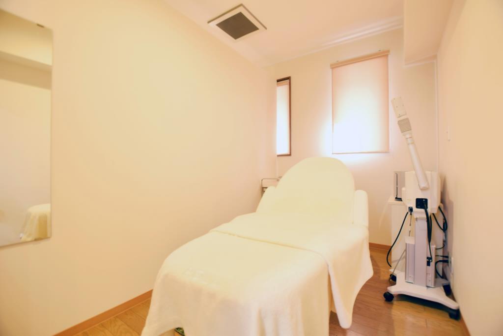 エステルームは広く、個室になっているのでリラックスしながらエステを受けることができる。